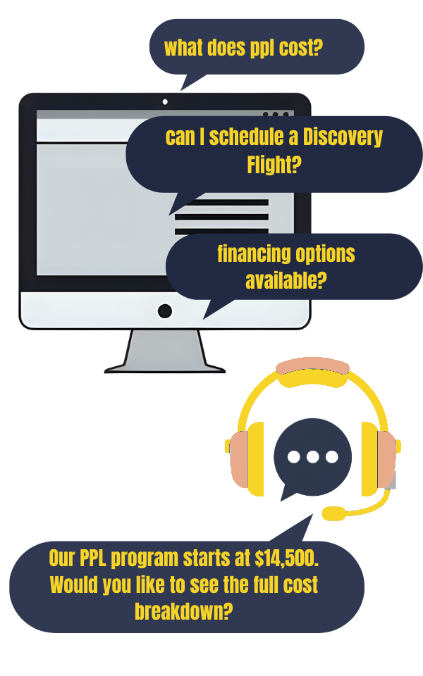 Answers 25–50 of your most common flight school questions using your real program details — fast, friendly, and accurate.